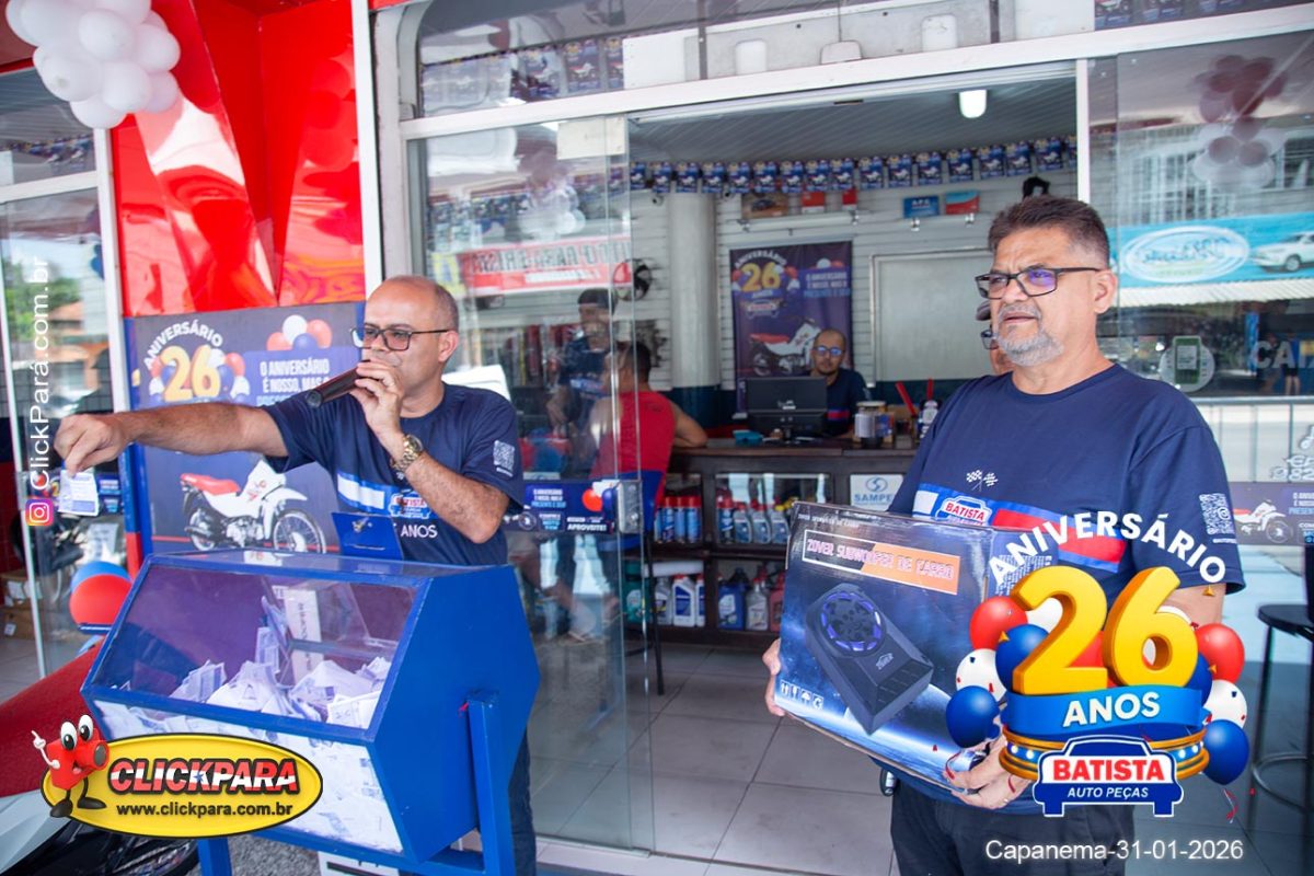 Na manhã de sábado, 31 de janeiro de 2026, a Batista Auto Peças, referência no setor automotivo, comemorou seus 26 anos de atuação ao lado de clientes, amigos e parceiros. A celebração contou com um café da manhã especial e diversas premiações para os clientes.